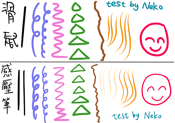 和滑鼠比較,P80橡皮擦感壓筆筆觸和順手程度大勝啊!滑鼠畫出來的粗細始終如一,而且滑鼠延遲真的超級嚴重~真佩服可以鼠繪的人,我大概只能用滑鼠拉路徑曲線了...