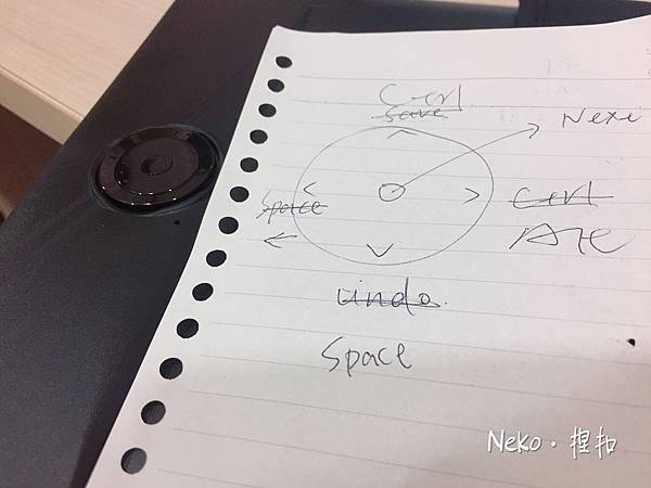 不夠智慧,不能像平板手機那樣手指隨時放大縮小怎麼辦?其實我原本因為這個煩惱尋尋覓覓後一直在考慮Wacom的支援多點觸控專業繪圖板,可是一樣專業板價格硬生生多了2倍多,後來用了PF8616發現自己真的是多慮了,最常用的兩個功能 1.轉盤上的硬鍵盤設成space,只要按著它+觸控筆就變成手型工具可以拖拉移動畫面 2.轉盤可設定"放大/縮小"功能,只要左右轉就能放大或縮小,解決了我的疑慮,瞬間摳摳也省下不少,也用得很得心應手
